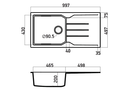 Νεροχύτης κουζίνας από φυσικό ορυκτό γρανίτη & συνθετικές ρητίνες. Αντιστρεφόμενος σχεδιασμός με 1 ευρύχωρη γούρνα και επιφάνεια αποστράγγισης.
